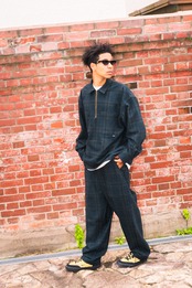 程よいハリと柔らかさを持つウール混フランネル素材を採用し、秋冬らしい表情に仕上げた一本。シルエットは、ブランドで根強い人気を誇るクラシックなベイカーパンツ型をベースに、ややゆったりとしたフィットに調整。同素材のシャツとセットアップスタイルも可能。スタイルに品とリラックスを両立させる万能な一本。