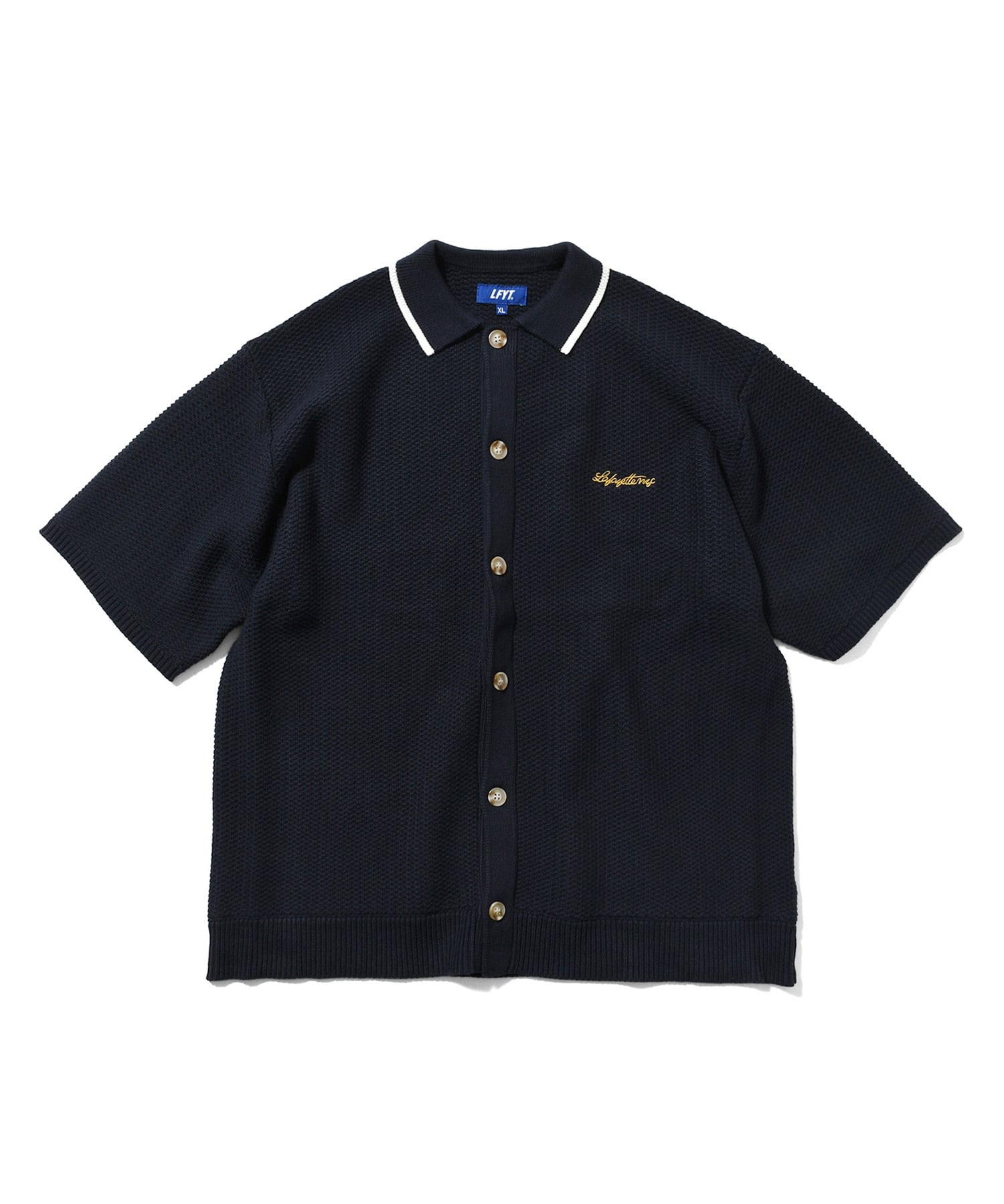 LFYT エルエフワイティー RAVEN PATTERN SUMMER KNIT SHIRT サマーニットシャツ LS260203 NAVY